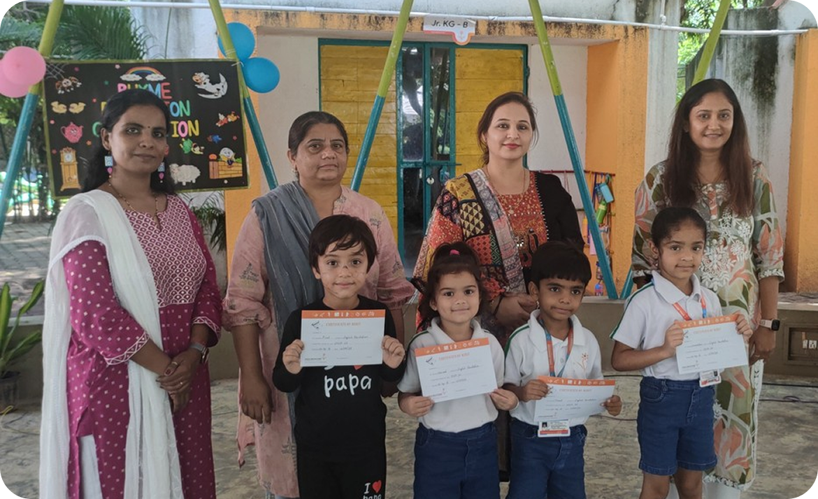 Our teaching approach is rooted in warmth, care, and a deep understanding of young learners. Teachers guide children through play-based, activity-driven learning that nurtures curiosity, creativity, motor development, communication skills, and emotional balance. Inspired by best early childhood practices, the curriculum integrates stories, rhymes, hands-on exploration, guided play, and structured routines. This helps children develop independence, confidence, and a sense of security while progressing at their own pace.